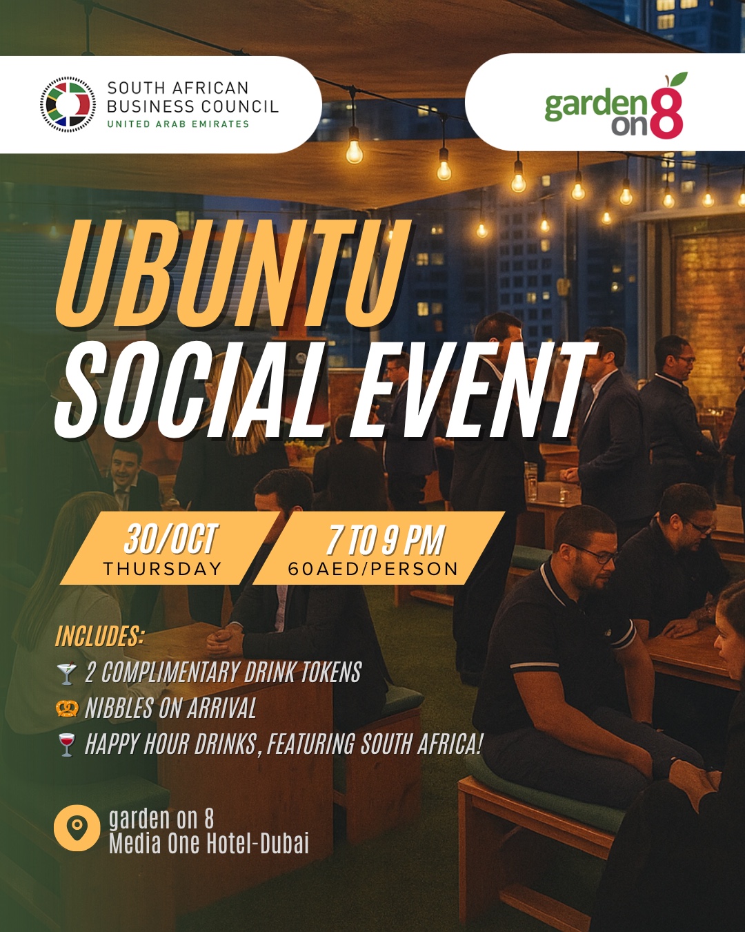 Join us this Thursday for our Ubuntu Social — an evening dedicated to connection, collaboration, and community. 🌅 Set against the vibrant backdrop of garden on 8 at Media One Hotel, this relaxed networking evening brings together professionals and entrepreneurs fr...